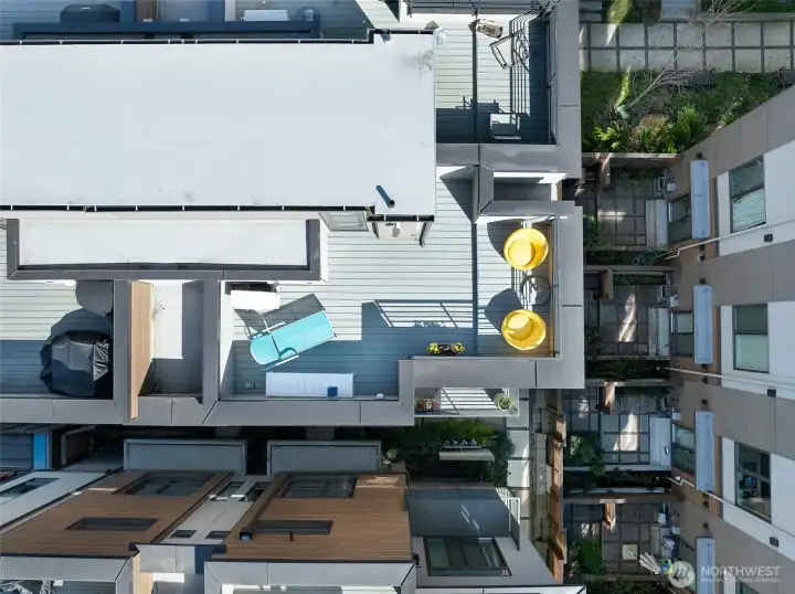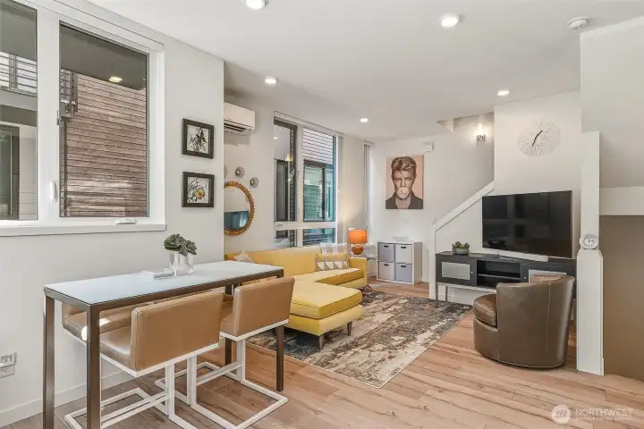 Urban location is not an exaggeration as one of the best features of this appealing better-than-new townhome. Amazing storage on ground floor with under-stair storage accessed through bedroom. Entry closet and Washer/Dryer also this floor. The great room living area features spacious kitchen with plenty of counter space, under cabinet lighting, new Electrolux refrigerator in 2024, Bertazonni gas range, and bonus pantry cabinet. Custom Hunter Douglas vertical honeycomb shades on most windows add some elegance and practical privacy and insulation. Upper level primary suite includes a walk-in closet and spa-like bathroom. The cherry on the top is a roof-top deck with territorial views (total deck space is 210sf in tax records). Light Rail (3 blocks), Green Lake paths, Whole Foods (1 block), Roosevelt shops, cafes, fitness club, UW, & Metro transit and bike paths all nearby. No HOA! Exceptional condition & premier location make this home a standout.