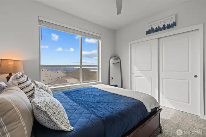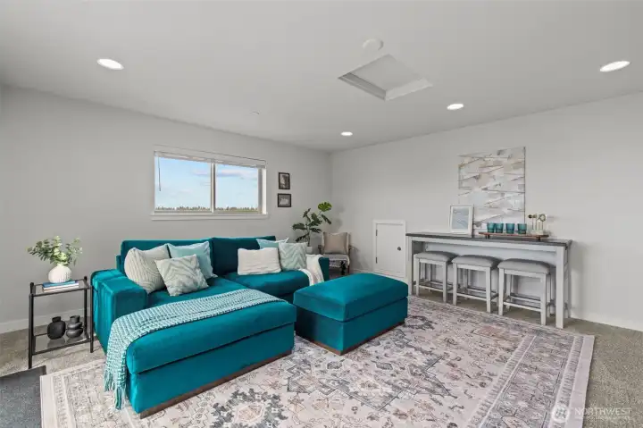 Exceptional townhome in the Westridge community at Issaquah Highlands offering abundant natural light and flexible living across four levels. Open-concept main floor features a gourmet kitchen with quartz counters, stainless appliances, and seamless flow to dining, living, and private deck. Upper level includes spacious primary suite with walk-in closet and two additional bedrooms. Top-floor bonus room opens to a west-facing rooftop deck with sunset views, Olympic Mountains on clear days, and prominent views of Lake Sammamish, along with additional outlooks toward the Cascade Range, Bellevue, and Issaquah, with the added bonus of viewing fireworks on the Fourth of July. Lower level provides private office or guest suite with en-suite bath and patio access. Double wall construction between units offers added sound separation, and fire sprinkler system throughout residence. Side-by-side two-car garage with storage. Convenient access to parks, shopping, dining, and I-90.