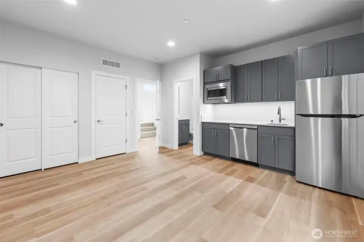 Conner Homes presents the Falcon - A thoughtfully designed multigenerational floor plan offering exceptional flexibility. Main level guest suite w/separate entry, washer & dryer hookups & attached 3/4 Bath w/kitchenette including sink, microwave/convection oven & sink. The main living area offers a perfect office alcove w/windows for a light & bright work area. In the heart of the home you will be greeted by soaring 12 ft ceilings & floor to ceiling tile linear electric fireplace. Kitchen w/white shaker style cabinets w/dark accent island. Quartz Counters w/full height tile backsplash & 5 Burner gas range w/ large single bowl undermount farm sink. Large walk-in pantry w/shelving & outlet + under cabinet lighting. Upstairs offers a lrg loft w/the primary on one side & addt'l bdrms on the other. Primary suite offers vaulting ceilings, walk-in closet & 5 PC bath w/tile floors & free standing soaking tub. Addt'l 2 bedrooms & full bath & laundry room w/ample storage. Fully fenced & professionally landscaped. Enjoy the brand-new clubhouse included w/your HOA dues & offers amazing Mt Rainiers views, a gym, pools, hot tub & places to gather including large fire pit & meditation pond + over 24 acres of walking trails & parks!
