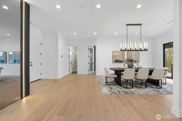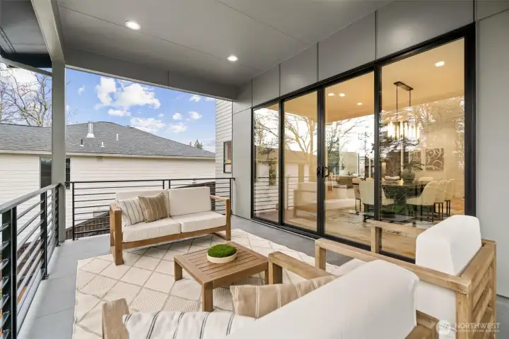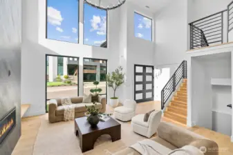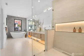 Custom modern luxury meets rare natural surroundings on one of the last remaining greenbelt lots in Spyglass Hill, located in the Camas School District. This stunning new construction offers 5 bedrooms and 5 bathrooms, including a versatile main-floor primary suite or office. The open-concept main level is designed for effortless living and entertaining, featuring a spacious living area, a beautifully appointed kitchen with a hidden pantry, and an open dining space that flows seamlessly to the deck overlooking peaceful outdoor green space. Downstairs, you’ll find a second spacious living area, bonus room, and private sauna. Upstairs offers 3 bedrooms, including a primary suite and guest suite, both with attached baths. Nearly every bedroom includes its own en suite, with expansive closet space in each of the homes closets. Enjoy seamless indoor-outdoor living with two decks, a large private yard, and a serene creek setting with seasonal peekaboo views of the Columbia River. A truly rare opportunity.