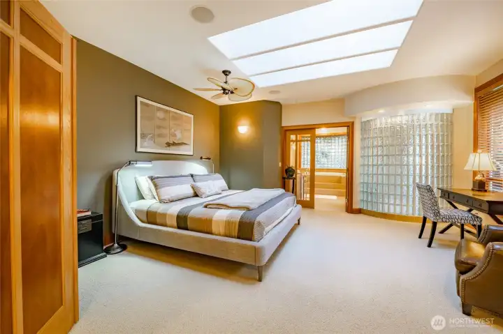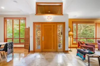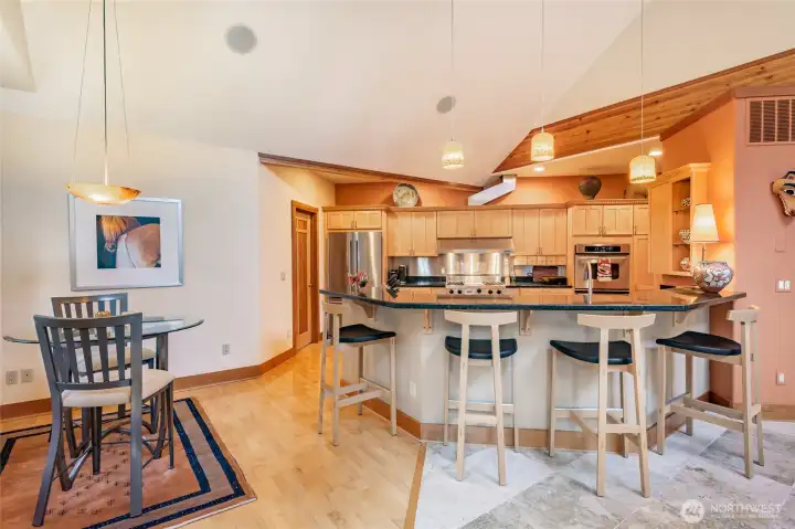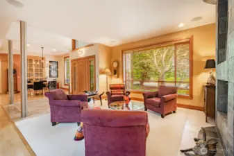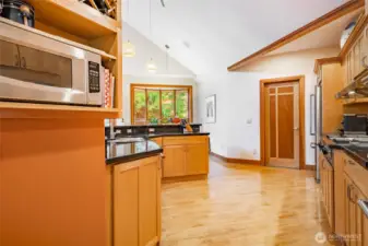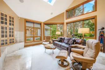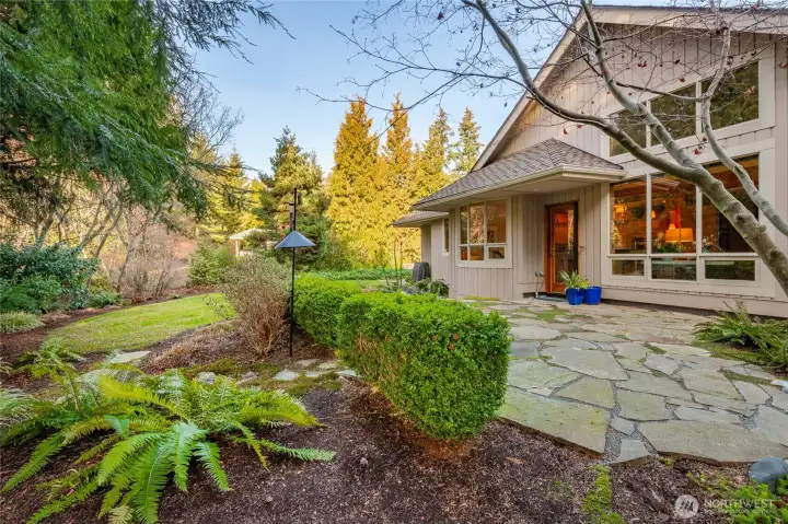 Quiet and private--backing up to permanent open space--this single-story custom home has been meticulously cared for. Classic Northwest craftsman design with a slight contemporary flair. Western sun exposure allows for lots of light throughout the home in the well placed windows. The backyard stone patio is a room in itself. This will not disappoint. Unique--in a good way--flowing floor plan is comfortable and easy to live in. The design, exterior windows, and skylights capture the lush landscaping with a "zen" feel, and the home reflects the outdoor beauty in a calm, serene way. Excellent workspace in the open kitchen with Viking appliances. The breakfast bar even comes with custom barstools! Three fireplaces create an inviting space in the great room/living room (which can be almost anything you want) and the primary. There is texture and style in the design choices of original maple hardwood floors, travertine tile and recently added Brazilian cherry floors in the den. Exceptional care from the ground up--all new insulation--new presidential composition roof and furnace only two years old. This is a custom home with a beautiful entry off a quiet interior street and yet easy walking distance to the golf club and surrounding trails. Always maintained to the highest quality this custom home is a rare find in todays marketplace.