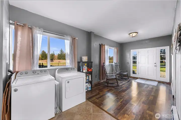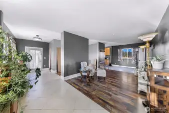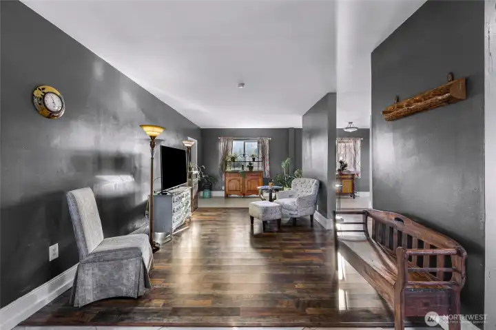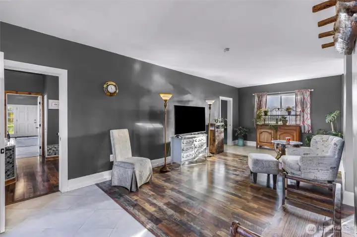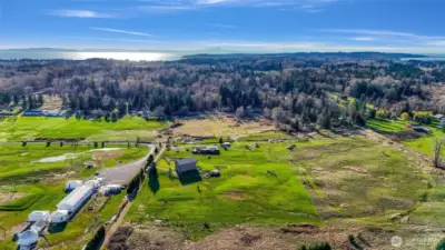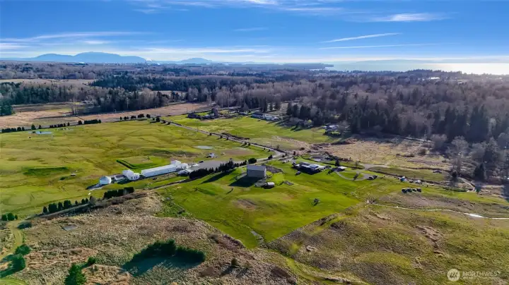 Looking for a spacious home, ready for your personal touches, on an open, sunny and private county acrerage lot? Welcome to this unique home with tons of room, featuring a flexible floor plan with main floor entry, kitchen, dining , laundry, one bedroom and several "flex" areas/rooms. Flow upstairs on the magical wide staircase to two huge rooms with soaring ceilings, seperated by an updated 3/4 bathroom with walk in shower . Both rooms showcase custom lighting, ceiling fans, and several "romeo and juliet" balconies that look out over the rolling open property. The park like 5 acre parcel features a whimsical pond with cat tails and singing frogs, a fenced in dog area, a chicken coup, storage sheds, maple trees, garden bed, blueberry bushes, Lilacs, mostly fenced in, and room for a big shop/garage. Great territorial views in all directions. Seller has updated the foundation, electrical and plumbing to code, new hardwood floors downstairs, bathrooms remodeled, new front door, exterior paint, and added the home and property to the water association, bypassing the well. All this in a perfect centrally located, private setting close to the freeway, birch bay amenities, golf, shopping, and a quick run up to Canada or into Bellingham.