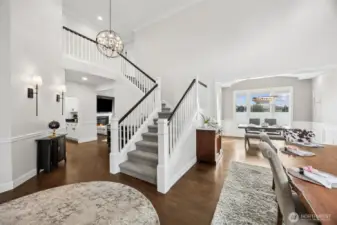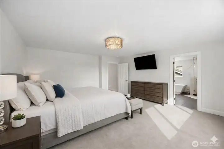 Pride of ownership is felt the moment you arrive at this beautifully cared-for home in the Lake Steilacoom area. From the grand entry to the light-filled living spaces, every detail has been thoughtfully maintained to create a warm and inviting atmosphere. The open-concept design flows effortlessly, centered around a stunning kitchen featuring a double waterfall island, gas cooktop, oversized refrigerator, and walk-in pantry. It’s a space designed for gathering, everyday living, and effortless entertaining. Upstairs, the primary suite offers a peaceful retreat with a spectacular view of the lake, creating a quiet moment to start and end each day. The spa-inspired bathroom features an oversized soaking tub and spacious shower, adding to the sense of comfort and ease. Large bedrooms and flexible spaces provide room to grow, work, or unwind. The oversized garage is truly exceptional, offering ample space for vehicles, storage, and projects. Just inside, a well-placed mudroom with an adjacent half bath creates a practical drop zone for daily life. The home is also wired for a generator, which is included. Outside, fresh lawn seed has been carefully laid to create a lush, vibrant yard, reflecting the care put into making this home move-in ready. Located just minutes from Fort Steilacoom Park with trails, dog park, and summer events, plus easy access to dining, coffee, and shopping. A home like this isn’t just found—it’s felt the moment you pull into the driveway.