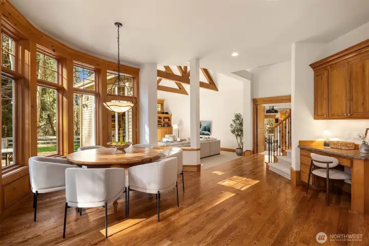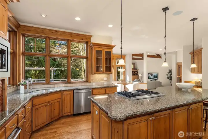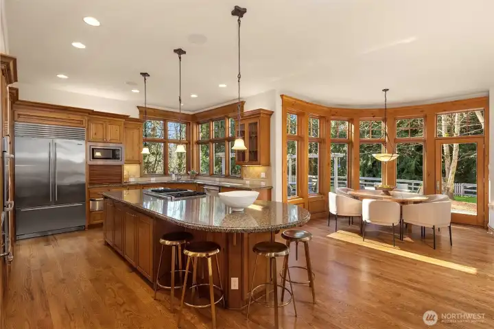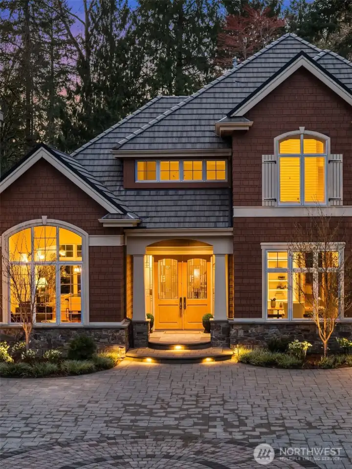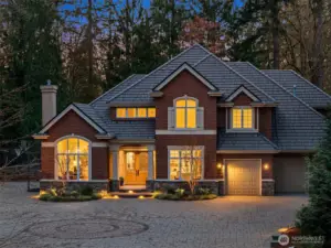 Private estate in The Hedges, one of Woodinville’s most sought-after communities with access to scenic walking and equestrian trails. Sited on a premier corner lot with mature landscaping and level lawn, this home offers a serene and refined setting. A gently winding paver driveway creates a memorable arrival with generous guest parking. Interior features include rich millwork, crown molding, updated lighting, leaded glass, rustic alder and wrought iron accents. Grand two-story foyer with sweeping staircase, formal living and dining rooms and dedicated office. Chef’s kitchen with slab granite, custom cabinetry, bayed nook, butler’s pantry with beverage refrigerator, and Sub-Zero, Viking and Bosch appliances. Vaulted great room with beamed ceiling and stone fireplace. Theater with Murphy bed. Luxurious primary suite with 5-piece marble spa bath. Bonus room, ensuite guest bedroom and additional bedrooms. Outdoor living with paver patio, stone pizza oven and generator.