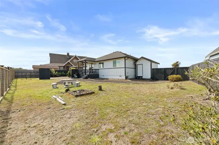 Enjoy the coastal lifestyle on one of the BEST streets in Ocean Shores, Spinnaker St! Step inside this 3 bdr rambler from the covered front entry and you’re welcomed into a bright, open living room where the stone-accent fireplace creates an instant focal point. The space flows freely into the kitchen equipped with granite counters, stainless appliances, and a casual counter bar that fits everyday living. Just beyond, a slider leads you to the covered deck and into a fully fenced backyard, where you'll find a private courtyard that feels like your own retreat. It’s the kind of space made for a hammock, a good book, and quiet afternoons with the coastal breeze. The backyard opens up even more with room to gather around the fire pit, watch for local wildlife, and enjoy evenings under the stars. Out front, you’re across from large green space, perfect for bike rides or long walks along the loop, with the Jetty and beach just minutes away. An attached garage offers convenience, and the backyard shed provides extra storage for all your beach gear and bikes, ready for all your fun ocean adventures!