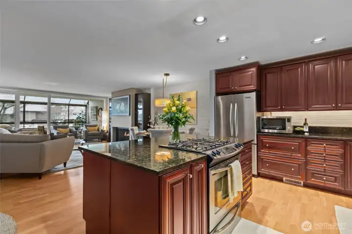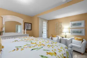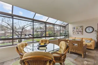 Rare lower-level corner unit with secluded entrance in a gated golf course community designed for easy, low-maintenance living, featuring resort-style amenities including a clubhouse with full-service restaurant & bar, fitness center, pool, spa, sports courts, driving range & pro shop. HOA covers full golf benefits, water, sewer, garbage, and gas—all gas appliances. Inside, an open-concept layout with tasteful updates flows seamlessly to a private sunroom with a partial view of downtown Seattle on clear days. Residents also enjoy access to a shared workshop space and a vibrant calendar of organized social activities, clubs, and events, making it easy to stay connected and engaged. A perfect downsizing opportunity with lifestyle built in—55+ community (waiver possible).