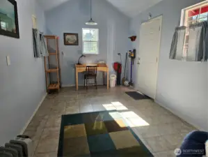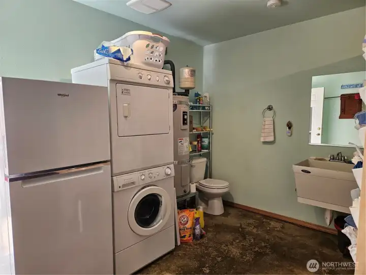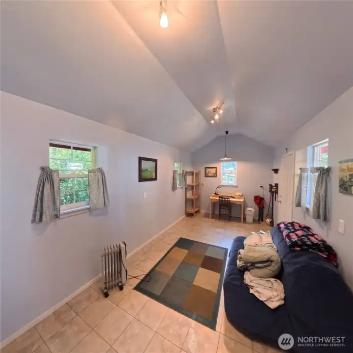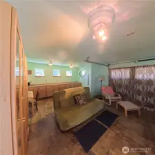 Rare Opportunity in Colony Surf! Discover this unique, fully furnished gem tucked away at the quiet end of the lake. This versatile two-story floor plan is designed for maximum utility, featuring an upper-level studio with a kitchen, 3/4 bath, and a space-saving Murphy bed—all dishes and utensils included!The lower level offers an integrated office space, built-in storage, a hide-a-bed for guests, and convenient in-unit laundry. Need more room? The detached 200 sq. ft. bunkhouse provides the perfect escape with its own desk and additional sleeping quarters.This property is fully prepared for modern convenience and outdoor living, featuring an RV hookup and professional wiring for both a generator and a hot tub. From the furniture to the forks, everything stays. Just bring your toothbrush and start lakeside living today!