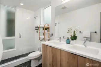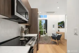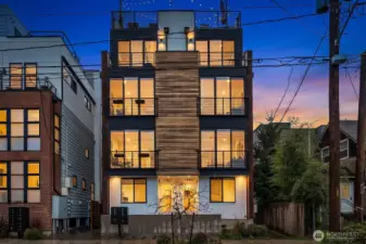 Pristine end-unit townhome offering urban privacy in the heart of Seattle, perfectly positioned between Capitol Hill and the Central District with a 95 Walk Score. At 2 bed, 1.75 bath and built in 2022, this architecturally modern home delivers the best of city living without compromise. The entry level welcomes you with a spacious guest bedroom and full bath, offering privacy and flexibility for visitors or a dedicated home office. One floor up, the open kitchen and dining area flow seamlessly into the living space, bathed in natural light from floor-to-ceiling windows and vaulted ceilings that create an airy, expansive feel. A versatile loft above provides the bonus space for dining, work, fitness, or creative pursuits. The full-floor primary suite is a true retreat, featuring a spa-inspired bath and custom California Closets. Above it all, a private rooftop deck rewards you with sweeping mountain views, ideal for morning coffee or evening gatherings, plus a small private turf yard. Thoughtful upgrades throughout include engineered hardwood, new carpet, and efficient mini-split systems for added peace of mind. Steps from PCC, Central Cinema, and the best of 23rd and Union, this location is unmatched. Three major bus lines, top-rated dining, local boutiques, and the cultural energy of two of Seattle's most beloved neighborhoods are all at your doorstep. Easy access to First Hill, the Central District, and Downtown makes this a home base for everything the city has to offer.