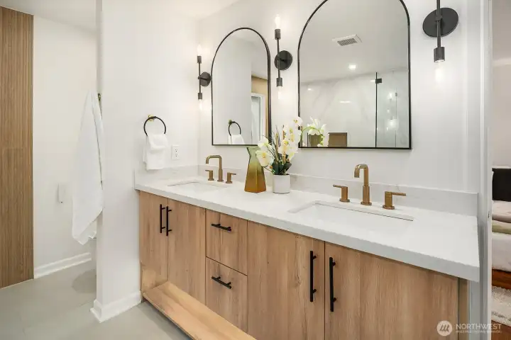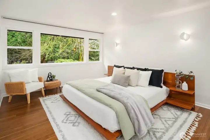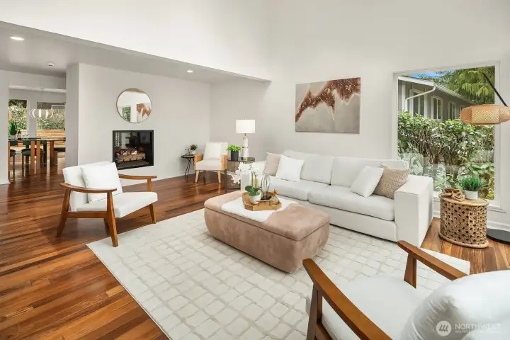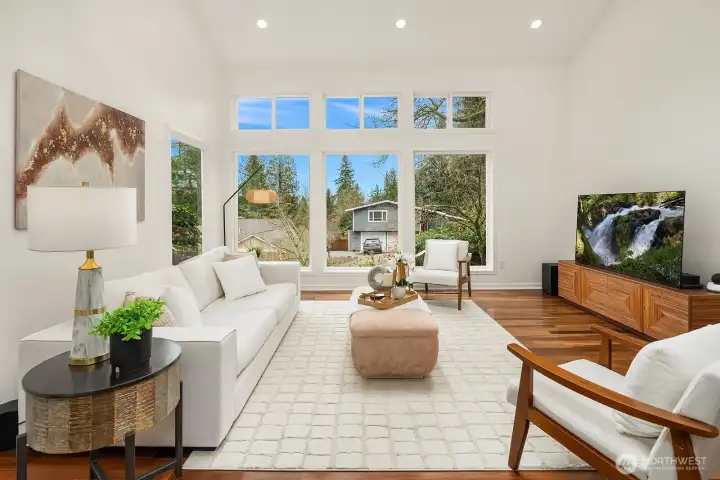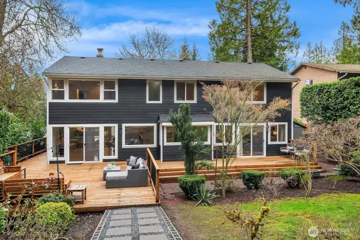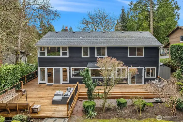 Discover quiet luxury in this light-filled NE Sammamish home, perfectly positioned on a peaceful cul-de-sac with breathtaking mountain views. Spanning 2,861 sq ft, the open-concept main level is framed by dramatic floor-to-ceiling windows and a dual-sided gas fireplace, creating a seamless flow from the living room to the elegant dining area. At the heart of the home, the updated chef's kitchen connects to the inviting family room, ideal for hosting friends or quiet nights in. Upstairs, the expansive primary suite serves as a private retreat, featuring a spa-like en-suite bath with premium finishes and two generous walk-in closets. Three additional bedrooms, a versatile bonus area, and a full bath provide plenty of space for a home office, guests, or flexible modern living. A convenient lower-level bath with a stand-in shower adds everyday functionality for busy households. Step outside to your private backyard oasis where an oversized deck and second patio are tailor-made for summer gatherings, gardening, or simply unwinding while soaking in the views. Two storage sheds and a fully fenced yard offer room for every hobby and need. Ideally located in the top-rated Lake Washington School District with quick access to transit, shopping, and eastside tech hubs, this meticulously cared-for home is move-in ready and waiting to be your next chapter.