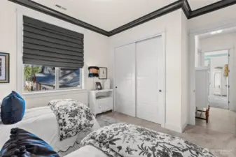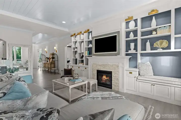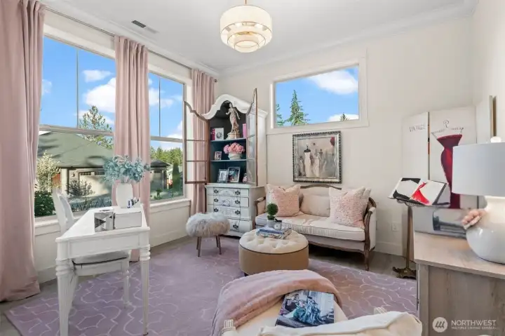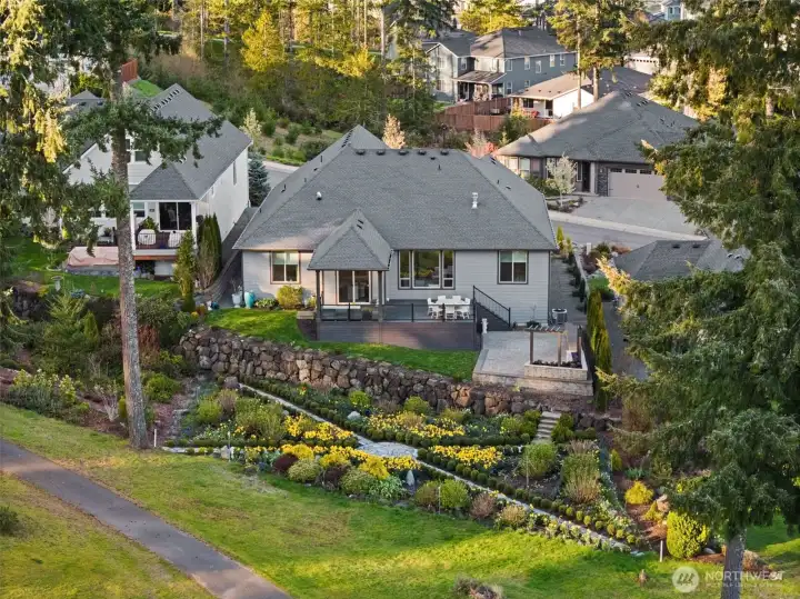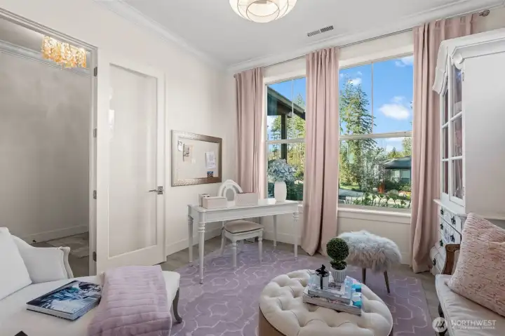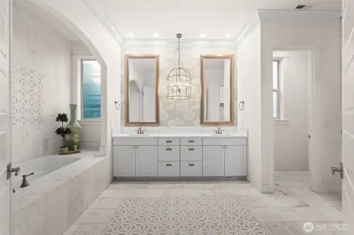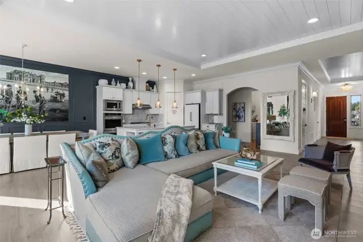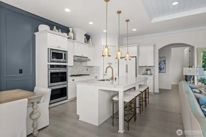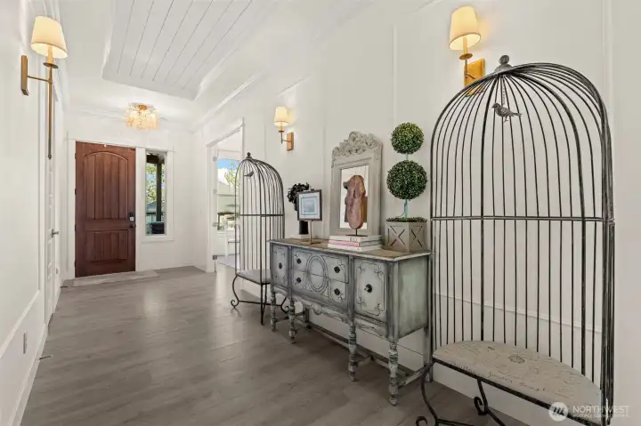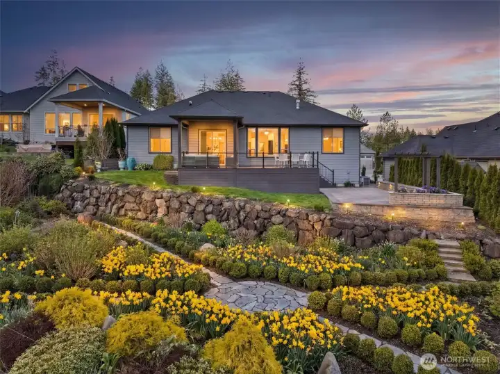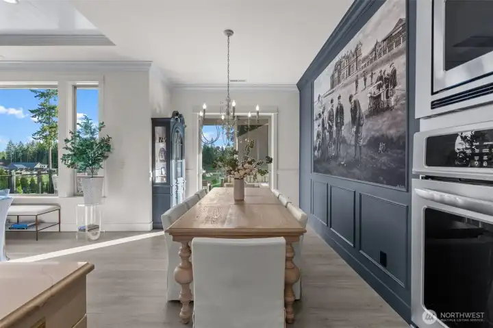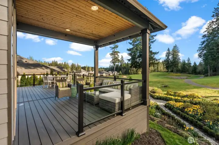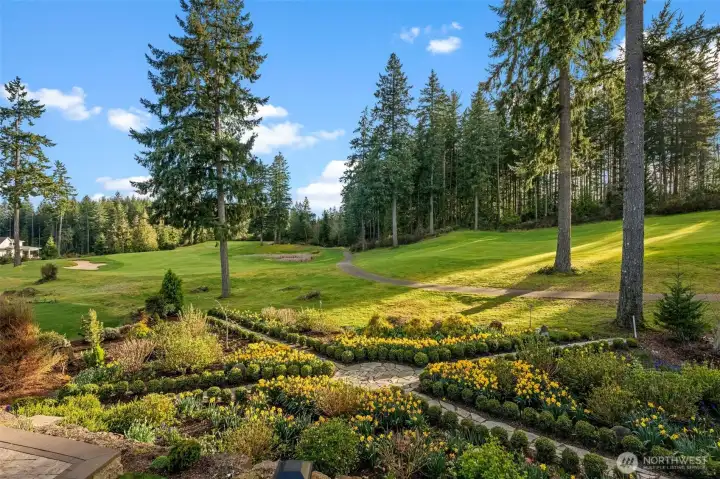 Elevated golf course living at its finest in McCormick Woods Golf Club. This immaculate, single-level home captures sweeping views of the 12th fairway, framed by a professionally designed garden so striking it regularly stops golfers in their tracks. Turnkey and better than new, this 3-bedroom + office, 2.5-bath residence showcases true luxury upgrades. Distinctive details include a custom vintage dining room mural inspired by the iconic St Andrews golf course—widely regarded as the “Home of Golf”—along with elegant crown and wall moldings throughout. Luxurious Calacatta Gold marble elevates the primary bath, while Carrara marble serves as a refined statement in the guest bath and kitchen backsplash. The open living space is both refined and functional, anchored by custom built-ins with integrated lighting, while the dedicated office offers flexibility for work or retreat. Ten-foot ceilings, 8-foot doors, and wide-plank luxury vinyl flooring create a bright, expansive feel throughout. Step outside to a truly exceptional outdoor living experience—complete with a newly built, maintenance-free deck and lush, professionally landscaped grounds designed for year-round beauty and entertaining. All just moments from championship golf, miles of scenic trails, and the clubhouse at McCormick Woods—bringing resort-style living to your doorstep.