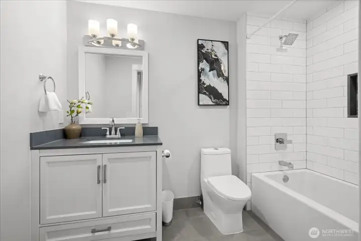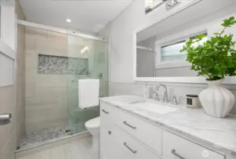 Beautifully remodeled home on large corner lot near Denny Park. Completely dialed & truly turnkey, this extensively updated split-level blends timeless architecture with refined, modern upgrades—each improvement thoughtfully executed with cohesion, quality & longevity in mind. All three bathrooms have been fully remodeled in a sophisticated gray-and-white palette—guest baths with elevated finishes and a stunning primary bath featuring higher-end materials, custom niches & impeccable detail. The kitchen shines with Brazilian granite counters, ss appliances & a generous island with eating bar that opens seamlessly to the inviting living area & beautifully updated fireplace. Rich hardwood flooring runs cohesively throughout both levels, including the office and stairs- risers rebuilt & framing reinforced for a solid, squeak-free feel. Trim inside & out has been meticulously redone with seamless boards and invisible splices. Every outlet and switch has been replaced, with smart switches added for convenience. 2026 Roof. A brand-new furnace enhances comfort & efficiency, along w/added interior wall insulation for sound dampening. The main garage rivals interior space with epoxy floors, heating, new window, WiFi belt-driven openers & matching trim & paint. The powered garden shed mirrors the same quality. Outdoors, enjoy updated decks, fresh fencing, paver walkways, resealed driveways, manicured beds. Expansive shop with strong potential for future DADU conversion. Top Rated LWSD