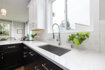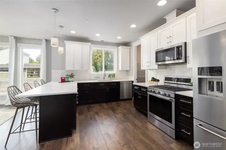 Immaculate custom luxury rambler nestled in a serene, established Mount Vernon neighborhood, offering refined single level living on over one-third acre. Soaring ceilings and light filled open architecture create an elegant, airy atmosphere, while oversized windows invite an abundance of natural light. Main living spaces are beautifully appointed with luxury vinyl plank flooring and centered around a striking see-through stone fireplace that adds warmth and sophistication to both the living and dining areas. Entertainment kitchen features glistening quartz countertops, full tile splash, soft close cabinetry, stainless steel appliances, gas range, bar seating, and a generous walk-in pantry. The expansive dining room and gracious living area offer the ideal blend of everyday comfort and effortless entertaining. The private primary suite is a true retreat with a spa inspired 5-piece bath, dual vanity, oversized tiled walk-in shower, and generous walk-in closet. Two spacious guest bedrooms and a full guest bath offer flexibility and complete the layout. Step outside to enjoy a fully fenced backyard with manicured, easy-care grounds and a wonderful patio designed for year-round enjoyment. Oversized 3-car garage, hot and cold exterior water, and ample space for all the toys, including trailer or RV parking. Fantastic location close to medical services, shopping, outstanding parks, hiking and biking trails, and just minutes to historic downtown.