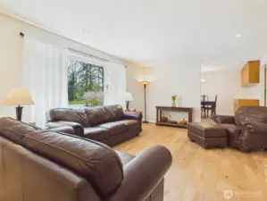 Welcome to this well appointed, immaculately maintained, 5 bedroom, 2.75 bath 1 story home on a generous 1.64 acre lot. Outdoor enthusiasts will enjoy the huge open yard with sport court, pond with waterfall, chicken coop and plenty of space for gardening and summer entertaining! The thoughtfully designed floorplan centers around the living room with stunning fireplace that flows through into the dining area. Most rooms have huge windows to bring in the natural sunlight and to take in the peaceful private park-like views of the yard. Just beyond the spacious well appointed kitchen you'll find a formal dining room with built in cabinets, an expansive bonus room, bathroom and laundry room. The primary suite includes an en-suite full bath with radiant heat floors and walk-in closet. The oversized 1341 sq ft 3 car garage is fully finished and has tons of workspace and an oversized 3 compartment stainless steel sink. Off the garage there is a full bathroom and heated finished fitness room or office or?? The roof and gutters have recently been replaced. All this within minutes to the freeway and shopping.