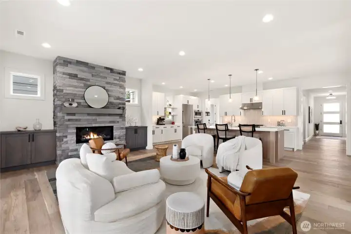Discover this North-facing, meticulously maintained Rose Hill home that's better than new construction! This impressive residence welcomes you with wide plank hardwoods and high-end finishes at every turn. The living area features a warm gas fireplace, while a dedicated mud room and 2-car garage offer everyday convenience. The main level also includes a private guest ensuite bedroom. The expansive kitchen features Fisher & Paykel appliances, a gas range, an oversized island, and a walk-in pantry — ideal for hosting gatherings. The formal dining room comes with custom built-ins and a wine fridge. Upstairs, you'll find four spacious bedrooms, a private office, a flexible bonus room, and a conveniently located laundry room. The grand primary suite is a true retreat, boasting a private deck, a dream walk-in closet, and a luxurious five-piece bath with heated floors. Step outside to a covered patio with a second fireplace, wood ceiling, and outdoor heaters, creating an excellent space for year-round entertaining — plus a professionally landscaped, fully fenced, and irrigated yard. Located just minutes from downtown Kirkland, this home blends comfort, style, and convenience in one of the Eastside’s most sought-after neighborhoods. Top rated Lake Washington School District! Easy commute to Microsoft, Google, I-405, and Downtown Kirkland restaurants, shops, parks & marina. Don’t miss it!