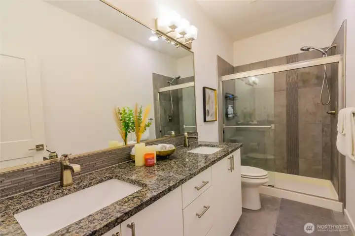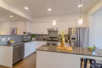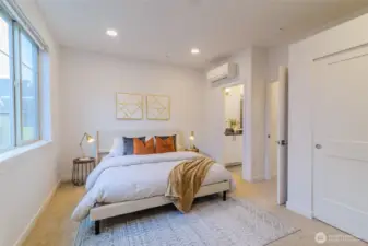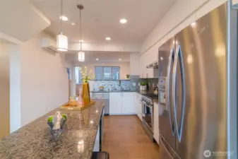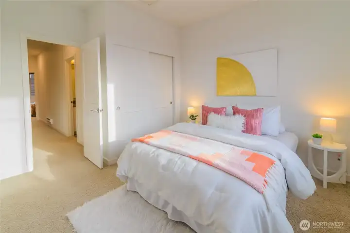 Bright and inviting, this modern townhome features an open-concept layout filled with natural light and designed for comfortable everyday living. Expansive windows and seamless flow between the living, dining, and kitchen areas create a space that feels both airy and functional. Mini-split heating and cooling provide efficient year-round comfort, including A/C for warmer days. The kitchen offers a clean, contemporary design with quartz countertops, stainless steel appliances, and a center island with bar seating, ideal for casual dining and gathering. Upstairs, the primary suite includes an ensuite bath with dual vanities and a spacious shower. The west-facing second bedroom enjoys abundant afternoon sunlight and works well for guests, a home office, or shared living, with a full bath nearby. Located just steps from Crossroads Mall, enjoy immediate access to groceries, dining, retail, and a movie theater. A nearby park offers open space for recreation, pets, and play. Community amenities include landscaped courtyards and convenient on-site retail. HOA covers water, sewer, earthquake insurance, and common area maintenance. Easy access to Microsoft, Downtown Bellevue, Redmond, and major routes including I-405 and SR-520. No rental cap offers added flexibility for future use or investment.