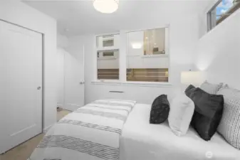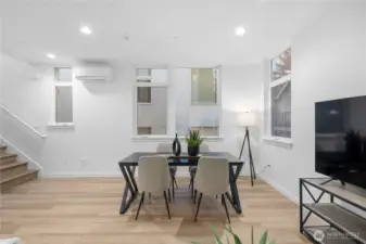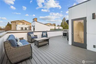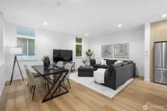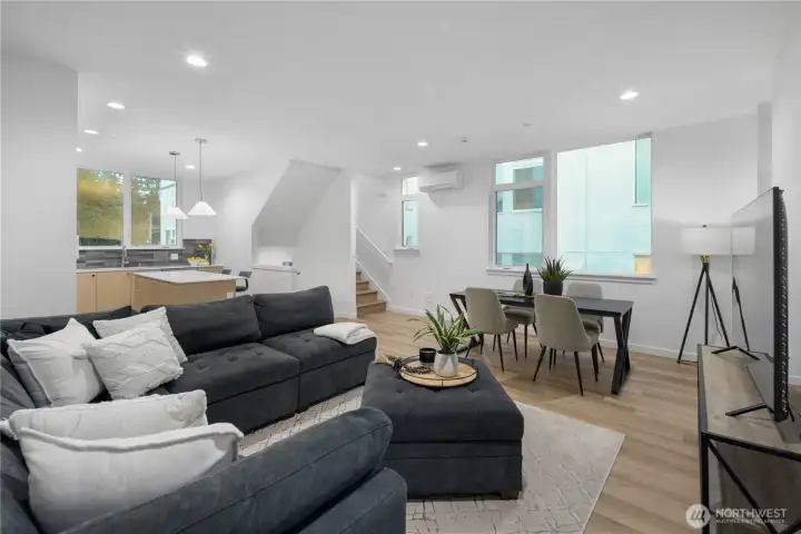 Clean lines, natural light, and thoughtful design define this Blackwood signature corner residence. One of only two similar floor plans, it lives bright and open with expansive windows that pull in light throughout the day. The main level centers around a beautifully appointed kitchen with quartz countertops, center island, and stainless steel appliances—flowing seamlessly into a great room built for both everyday living and effortless entertaining. An en-suite bedroom on the first level (one of two) offers flexibility for guests or a private workspace, while the upper level hosts a serene primary suite and additional bedroom. Above it all, a rooftop deck captures sweeping territorial and mountain views—an ideal backdrop for quiet mornings or sunset evenings. Complete with a private garage and EV charger-ready setup, this home blends comfort with forward-thinking convenience. Tucked in a quiet location with close proximity to both Northgate and Shoreline light rail stations—and another set to open just blocks away—this is modern living, elevated and effortlessly connected. No HOA.