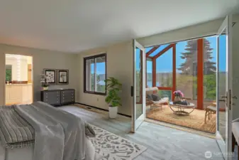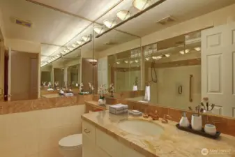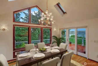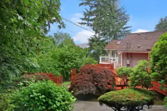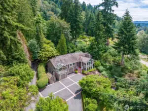 Wake up to sweeping 180-degree views of Lake Sammamish every single day. Nestled on .701 acres of enchanting gardens, winding walkways, and a running creek, this 4-bed, 2.75-bath, 3,300 sq ft home is a true urban oasis. Vaulted ceilings and floor-to-ceiling windows flood the living and dining rooms with light and lake views. A sunroom off the primary suite means you enjoy those views year-round. Large terraced decks are perfect for entertaining. The grounds are private and lush with a built-in sprinkler system — and the view trees are on your property, so you control your water exposure. Private beach access shared with just 4 other homes, plus a deluxe shared dock. Easy access to the E Lake Sammamish Trail from your neighborhood. Refinished hardwoods, new composition roof in 2022, 3-car garage with workshop space. The bones, the setting, the views — all extraordinary. Bring your creativity and make it entirely your own. Your imagination. Your lake. Your move!