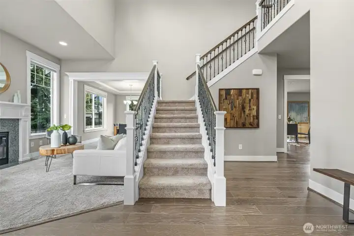 Must See!! Beautiful move-in condition, corner lot home in Kennydale. Grand entry with high ceilings, Gourmet Kitchen w/Granite Countertops, 5 burner gas stove, Large Island & Breakfast Nook great for entertaining. Bright & spacious open floor plan, hardwood floors, separate Dining Area, Family Room & Living Room w/custom built-in shelves and elegant fireplaces. Main Floor Bathroom has a Shower. Spacious Den/Office/possible extra bedroom w/Wainscoting panels. Primary Bedroom w/vaulted ceilings, double sinks, walk-in closet and soaking tub. Central A/C for comfortable summers. Huge Bonus Room w/closet. Large 3 car Garage for plenty of storage space, fully fenced level Backyard w/Patio and shed, Easy access to I-405, only minutes to Bellevue & Newcastle. A close walk to lake, park, bus, dining, shopping & walking trails.