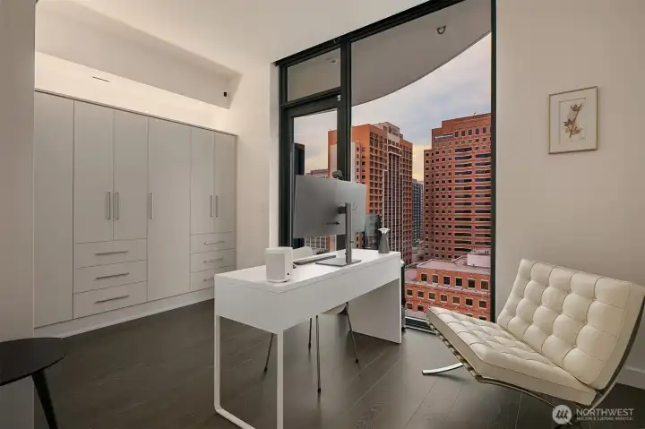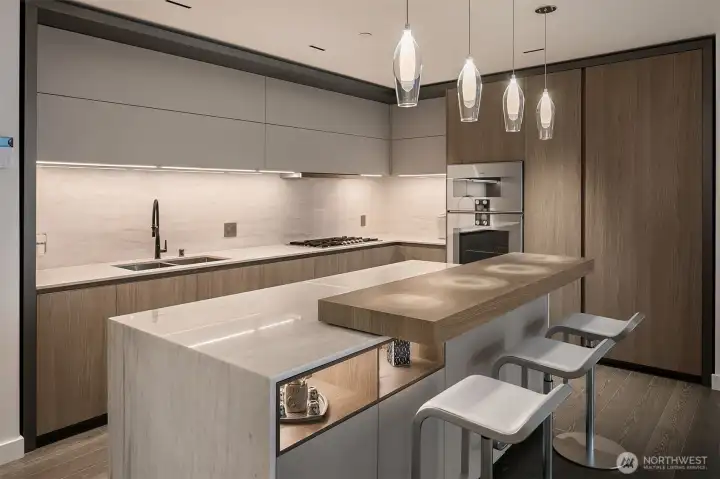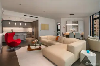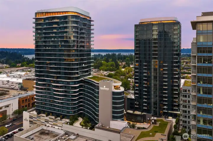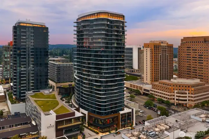 Experience elevated urban living at Avenue Estates. This better-than-new, sunny SE-facing corner residence showcases an open layout with 9.5' ceilings, wide-plank wood floors and sweeping city and lake views through a wall of floor-to-ceiling windows. The gourmet island kitchen features Ernestomeda cabinetry, marble and Caesarstone countertops and top-of-the-line Gaggenau appliances. The primary suite offers a spa-like bath with Laufen soaking tub, rain shower and double vanity plus custom closet built-ins. The home also includes 2 parking spaces with an EV charger and storage unit. Enjoy resort-style amenities with 24/7 concierge, fitness center, owner’s lounge, InterContinental Hotel plus the best of downtown Bellevue: shopping, dining & more all at your doorstep. Don't miss the rare opportunity to own this popular and otherwise completely sold out floor plan!