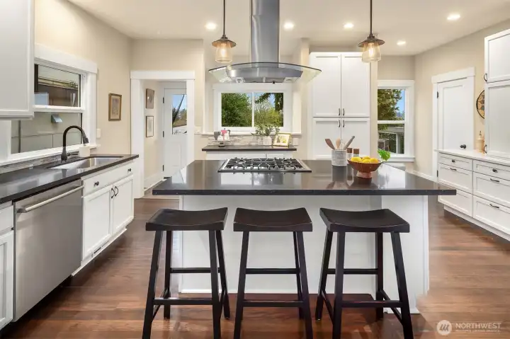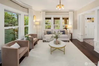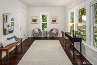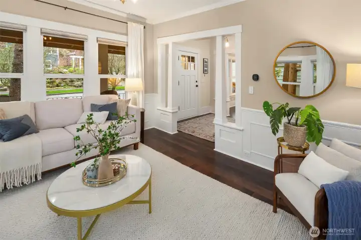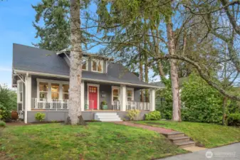 Nestled at the nexus of Ravenna, Wedgewood, and Maple Leaf, this classic American Foursquare Craftsman is a home you’ll fall in love with before even making your way inside. The front porch offers a beautiful, elevated, and sheltered space to admire the quiet, tree-lined street. Inside, bright living spaces feature lofty ceilings and generously sized rooms. The craftsman details add warmth without sacrificing grandeur. Upstairs you’ll find two spacious bedrooms, each featuring walk-in closets. The powerhouse bathroom boasts a substantial shower and the ease of having the washer and dryer tucked near your wardrobe. In the finished basement you may be tempted to admire the bathroom and its steam shower for so long you nearly forget to check out the cozy living/bonus room, extra bedroom, or multiple storage spaces. When you’re ready, head back outside. Remember that amazing front porch? The back deck is its worthy competitor for best outdoor space on the block. The thoughtfully designed deck is the perfect place to have a lively meal with friends or enjoy the striking sunrise or sunset light on Mt. Rainier which is framed perfectly by the neighboring trees. You may not want to leave home, but if you need to the location is top notch. Car-free for a day or a lifetime? Easy sidewalk meandering to neighborhood restaurants and stores plus the close proximity light rail means issue-free movement throughout the region. Welcome home!