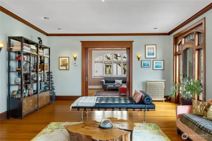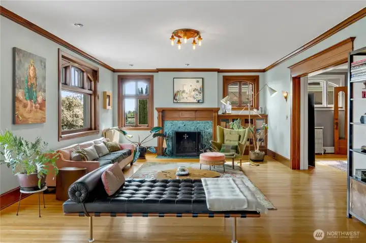 Designed in 1911 by noted architect James H. Schack, the Roy P. Ballard House stands as a masterwork of early 20th-century residential architecture in Seattle’s historic Mount Baker neighborhood. Schack infused this Spanish-influenced, foursquare-style residence with a refined elegance that balanced formal structure with the organic warmth of the era’s finest craftsmanship. The home’s interior is a beautifully preserved showcase of intricate, original Mahogany moldings, casework, paneling, and authentic period details. This extraordinary home is perfectly sited on Cascadia Ave. Souths ridge line, offering sweeping views of Lake Washington and the Cascade Mountains. (It is still connected to its twin, the W. Logan Geary residence, by its iconic shared portico) The home’s design and flow offers multiple living areas, a large kitchen with a breakfast area, butler’s pantry, formal dining room, sitting area, and an extraordinary garden atrium and patio. The second level consists of a large primary bedroom with en-suite bath, fireplace, multiple walk-in closets plus a large family room, two additional bedrooms (one currently being used as an office) three-quarter bath and an outside deck with hot tub. The third level offers two more large bedrooms, a three-quarter bathroom, storage and multiple view decks. The lower level offers a billiards-recreation room with fireplace (pool table conveys) three-quarter bath, workout studio, mechanical room, shop + two car garage.
