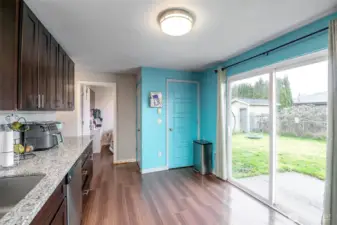 Charming rambler in the heart of Tacoma. The covered front porch welcomes you to the living room with a large window for plenty of natural light. The kitchen offers dark wood cabinetry, stainless steel appliances, subway tile backsplash plus an eating area. 3 bedrooms plus a full bath complete the layout. The slider from the kitchen leads out to the patio in the fully fenced backyard. Tons of potential with a large lawn and shed for extra storage. Minutes from downtown Tacoma, I5, shopping and parks.