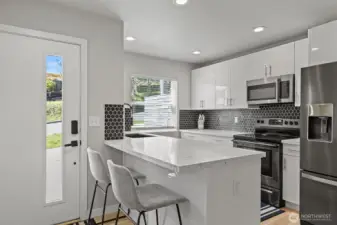 Experience elevated living in this stunning contemporary residence showcasing sweeping views of Mt. Rainier and Tacoma. Thoughtfully designed for both comfort and sophistication, the open concept floor plan is ideal for entertaining, highlighted by expansive windows and skylights that flood the home with natural light and frame the surrounding scenery. The chef’s kitchen is a true centerpiece, featuring sleek quartz countertops, premium stainless steel appliances, and refined finishes that seamlessly blend style and functionality. Upstairs, full bathrooms with double vanities offer a spa inspired experience, creating a serene, elevated retreat. A versatile third level loft or office opens to a private balcony and patio, perfect for BBQ’ing and entertaining while taking in the sweeping views of Mt. Rainier, or enjoying quiet moments above it all. Ample street parking adds everyday convenience. Comfort meets efficiency with a brand new mini split system, complete with a 12 year parts warranty and 2 year labor warranty. Ideally located just minutes from the University of Washington Tacoma, this home offers strong rental potential for short and long term tenants alike. Enjoy close proximity to gyms, parks, shopping, and dining, along with a convenient commute to Seattle and Bellevue with easy freeway access. Whether you're an owner occupant or investor, this home delivers modern design, lifestyle convenience, and exceptional upside in a prime Tacoma location.