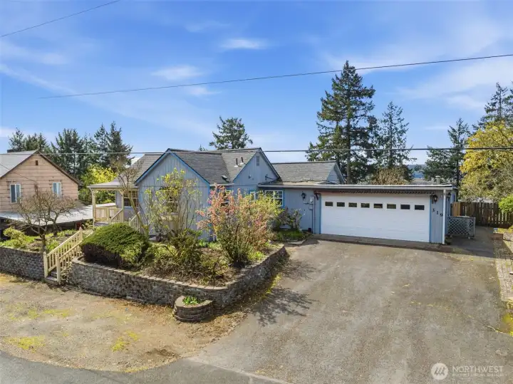 Welcome to this adorable Kalama cottage that is ready for your personal touch! With spacious living areas filled with natural light, this home is both cozy and cheery. Two bedrooms and one bath with many comforting updates like a forced air furnace, heat pump, vinyl windows, and a newer roof. Bathroom has been fitted with a full-size shower plus separate step in bath. Hard surface flooring flows throughout the home. Composite decking on covered front and back porches. Charming paver paths that wind through flower beds loaded with established flowers, trees and shrubs surrounding the home. Enjoy the views of the Columbia River and vibrant downtown as you work the raised garden beds out back. Extra large attached garage has workshop space and additional storage behind it. Lots of paved parking in the driveway plus streetside parking out front. Located just blocks from downtown, schools, parks and more. With a little work, this cutie can shine again. Come and make it yours!
