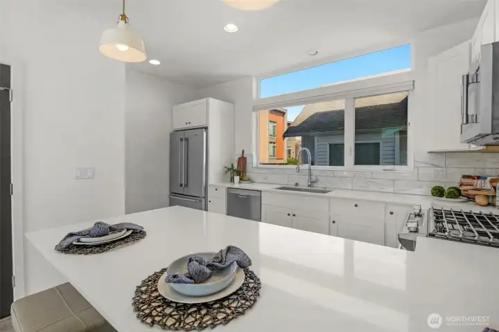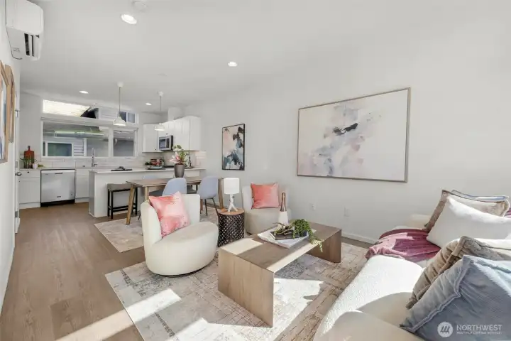 Welcome to modern urban living at its finest in the heart of flourishing North Beacon Hill. This sophisticated townhouse, part of the Grand Five development, perfectly blends contemporary style with functional, energy-efficient design. Step inside to discover a bright and airy floor plan highlighted by stunning engineered hardwoods and soft-close cabinetry that exudes quality at every turn. The chef-inspired kitchen features premium appliances and sleek finishes, ideal for both daily living and effortless entertaining. With three spacious bedrooms and nearly 1,200 square feet of meticulously maintained living space, this home offers the versatility needed for a modern lifestyle. The crown jewel is the top-floor primary suite, a private sanctuary complete with a luxurious attached bath and a spacious deck, the perfect spot to enjoy serene territorial and mountain views. Comfort is guaranteed year-round with a high-efficiency ductless mini-split heat pump providing both heating and cooling, complemented by a tankless hot water heater for maximum efficiency. Situated less than a mile from the LINK Light Rail and mere minutes from I-5, I-90 and downtown Seattle, this location offers unparalleled commuter convenience. Whether you are relaxing on your private deck or exploring the local parks and vibrant neighborhood amenities, this property represents an incredible opportunity to call one of Seattle's most sought-after communities home.