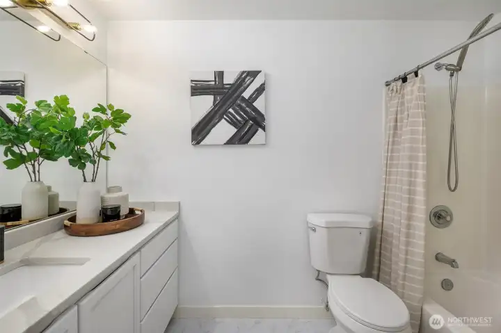 From the moment you step inside, dramatic ceiling height creates an immediate sense of openness, allowing natural light to move effortlessly throughout the main level. The recently updated kitchen features refreshed finishes & modern touches, opening seamlessly into the dining area & expansive living room anchored by a cozy gas fireplace. A convenient half bath adds functionality for guests, while a sliding glass door extends the living space to a private patio, perfect for morning coffee or dining alfresco! Upstairs, a striking skylight crowns the stairwell, bringing in abundant natural light & adding architectural character that sets this home apart. The upper level includes a generous primary suite with walk-in closet & en-suite bath, a 2nd bed, full bath, laundry closet, & an open loft ideal for a home office or additional flex space. An attached 1-car garage plus driveway parking provides everyday convenience. Recent improvements include fresh interior paint throughout, plush carpet in both beds, laminate tile flooring in both upstairs baths & the laundry closet, a new toilet in the primary bath, & a newly installed gas water heater. Seller-provided inspection report & HOA resale documents are available for buyer review. Ideally located just minutes from downtown Edmonds, its waterfront, dining, shops, & commuter routes.