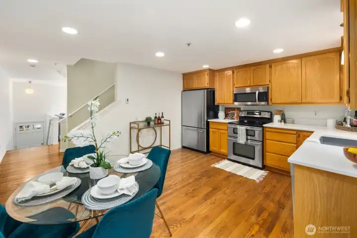 Discover this lightfilled, end unit townhome in the heart of North Beach, where comfort meets convenience in one of the area’s most charming neighborhoods. Enjoy vaulted ceilings in the upstairs bedrooms. The versatile layout includes an additional bedroom and bathroom on the lower level—perfect for guests or a home office. And no HOA! Stay comfortable year-round with air conditioning, and enjoy the ease of a garage plus a spacious two-car driveway. Kick off your weekend with just a short walk to Café Fiore and Golden Gardens Park. Close to neighborhood favorites like Swanson's Nursery and Metropolitan Market, this home offers the perfect blend of comfort, style, and walkability.