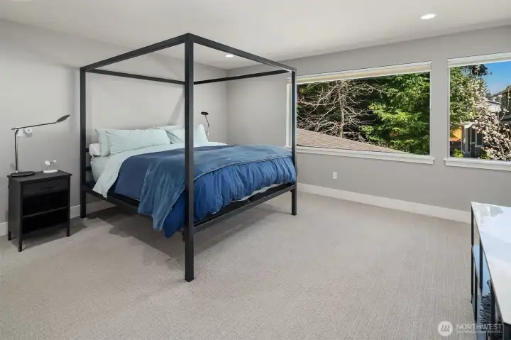 Stunning 2019-built by Merit Homes resale in coveted South Rose Hill with upgrades galore offers a perfect blend of modern functionality and everyday comfort! Upgrades: Tesla Powerwall 3 (x2) + Tesla Charger with PowerShare System + 2 NEMA L-14/50 EV Charger Receptacles in spacious 3-car garage; Solar PV Panel system; SPAN Smart Electrical Panel; Flair Smart HVAC Zoning System. Open layout, soaring ceilings, walls of windows, and skylights make the house light & bright. Imposing entry, well-appointed Great room with dramatic floor-to-ceiling stone surrounded gas fireplace that seamlessly flows to entertainment-size Dining and Chef's kitchen w/ Extra-long Quartz Waterfall Island with a walk-in pantry. Ample high-quality Cabinets and Top-of-the-line SS Appliances: Samsung Bespoke 4-Door Refrigerator, Bosch Dishwasher. Sizable Covered Patio w/ Gas Fire Pit. Main-floor bedroom with ¾ Bath is perfect for guests or multi-generational living. Second floor: Sumptuous Primary Suite, Grand Spa-Style 5-piece Primary Bath w/Heated Floors & Custom Walk-in Closet; 3 additional spacious Bedrooms, Full Bath, Massive Bonus Room (Tonal AI Driven Exercise System stays), & Laundry Room w/ dual Samsung Bespoke Washer/Dryer Combo. Fully fenced, low-maintenance backyard has Aqua Quip Hot Tub, Trampoline & Golf practice mat. Incredible location-quick access to Kirkland dining, shopping & major employers. Top-rated Lake WA schools! Pre-inspected & ready for move-in!