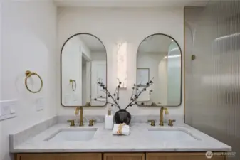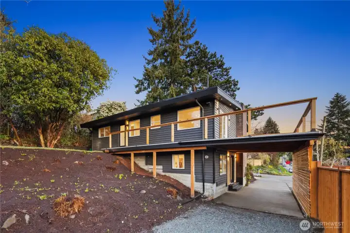 Absolutely must-see West Seattle masterpiece—an extraordinary 4-bedroom,3-bath residence defined by bespoke finishes, meticulous craftsmanship,&sophisticated design throughout.The main level impresses with a handcrafted tadelakt plaster fireplace,paired with a sleek electric insert and ambient lighting,creating a dramatic yet inviting focal point.The open-concept kitchen is a true showpiece, featuring a premium downdraft range,custom designer island,Taj Mahal quartzite countertops, high-end stainless appliances, & a striking statement backsplash.The dining area opens to an expansive deck, ideal for elevated entertaining, alfresco dining, or private outdoor relaxation.The primary suite is a refined retreat,boasting a designer accent wall, curated lighting, and a fully customized walk-in closet.Its spa-inspired ensuite includes dual vanities,curbless walk-in shower, anda luxury smart bidet toilet.The lower level features two additional bedrooms,a tadelakt-finished bath,private mirrored fitness studio,&oversized laundry with cabinetry,sink,and folding space.A separate-entry family room with kitchenette, beverage cooler, and designer fireplace offers versatility for guests or multi-generational living.Complete with A/C,dramatic soffit lighting, premium metal roof, oversized parking with RV/boat space,covered carport,and beautifully manicured grounds. Ideally located near parks, Alki Beach, and downtown Seattle. Opportunities like this in West Seattle are rare-and they dont last.