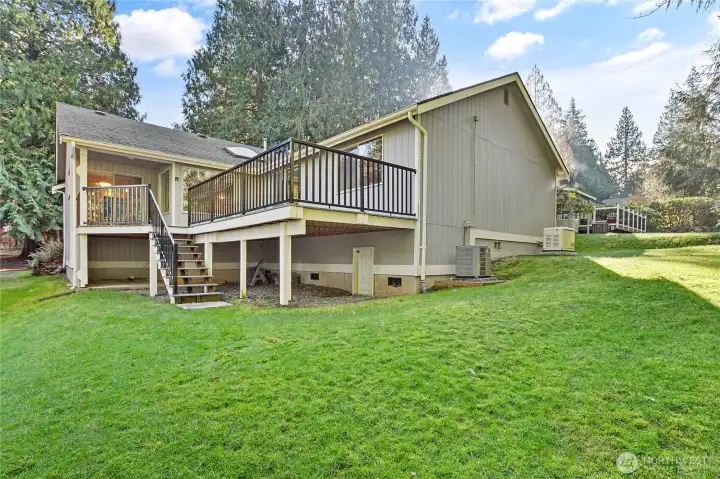 Discover the perfect blend of modern comfort and tranquil living in this highly desirable, single-level Gate 1 retreat, featuring the rare convenience of a flat driveway for easy year-round access. This meticulously maintained home offers three bedrooms and two baths, including a spacious master suite with a walk-in closet, and two distinct living areas complemented by both a charming breakfast nook and a separate dining area. Oversized windows flood the space with natural light and frame serene wooded views, while recent high-value upgrades provide total peace of mind, including a new furnace, new heat pump, and new hot water tank, along with newer flooring and a kitchen featuring a newer gas stove and convection oven. Backing directly to peaceful green space and located just a short stroll from North Point beach, the property offers an outdoor oasis secured by a Generac generator with a transferable warranty and new Trex deck. Residents also enjoy the unparalleled amenities of the Sudden Valley community, including an 18-hole golf course, marina, miles of hiking trails, swimming pools, and a fitness center. Don’t miss the massive standing crawl space with endless possibilities for a workshop or storage, making this a rare find that balances effortless accessibility with a stunning natural setting.