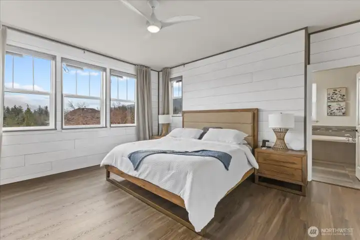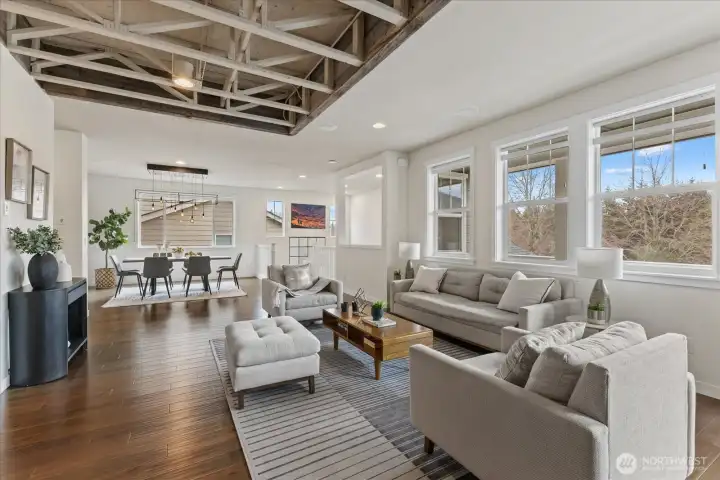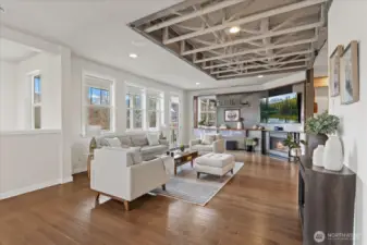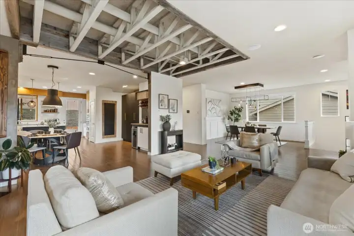 Fully remodeled Snoqualmie Ridge home (updated just 3 years ago) featuring designer upgrades throughout. The gourmet kitchen showcases new custom cabinetry, quartz countertops, a built-in beverage station, and high-end appliances—perfect for both everyday living and entertaining. The stunning living area is anchored by a custom metal inlay media wall, exposed beams, and sweeping mountain views. A highly flexible layout includes a spacious bonus room with built-ins, mezzanine guest suite with ¾ bath, loft/flex space, and three additional bedrooms. The primary suite offers panoramic views, elegant shiplap accents, and designer lighting for a true retreat experience. Enjoy modern comforts including whole-home audio and a high-efficiency 5-stage heat pump with A/C. Garage upgraded with epoxy flooring and fully painted finish—clean, durable, and easy on your feet. Step outside to an expansive deck ideal for entertaining. Located just steps from a community park, with convenient school bus access nearby. Exceptional craftsmanship, thoughtful design, and a prime Snoqualmie Ridge location—don’t miss this one.