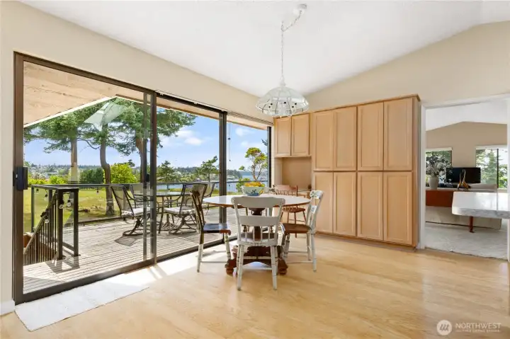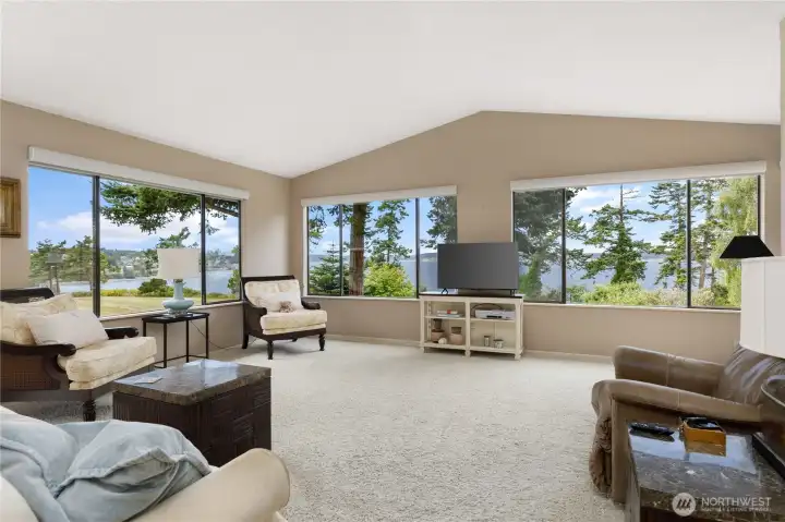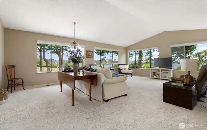 Perched above the shimmering waters of Penn Cove, this west-facing home captures sweeping, unobstructed views of historic Coupeville and its iconic Coupeville Wharf. From sunrise serenity to evenings filled with twinkling shoreline lights, the setting is nothing short of magical. Spanning 3,255 sq ft, this thoughtfully designed home showcases panoramic water views from nearly every room. The updated kitchen features a central island, ample dining space, and seamless access to the expansive view deckâperfect for entertaining or simply soaking in the scenery. Upstairs, the light-filled living room is framed by walls of windows that bring the outdoors in. The main-level primary suite offers a private retreat with direct deck access, while the flexible 5-bedroom layout (2 on the main level, 3 downstairs) provides room for guests, multi-generational living, or home office needs. The lower level boasts a spacious second living area with a cozy stove and walk-out patio. Car enthusiasts and hobbyists will appreciate the impressive 4-car garage complete with a large shop area and convenient drive-through bay. Enjoy access to a private community waterfront park with stairs to the beach, all nestled in a quiet, highly sought-after neighborhood just moments from a nearby boat launch and a short stroll into the charm, shops, and dining of downtown Coupeville. This is Pacific Northwest living at its finest- where views, lifestyle, and location come together seamlessly.