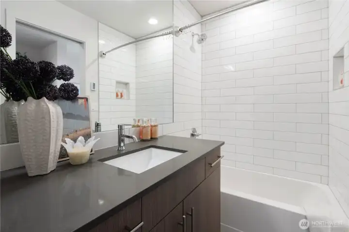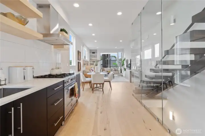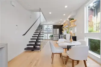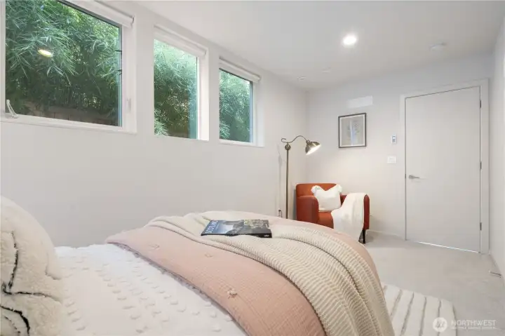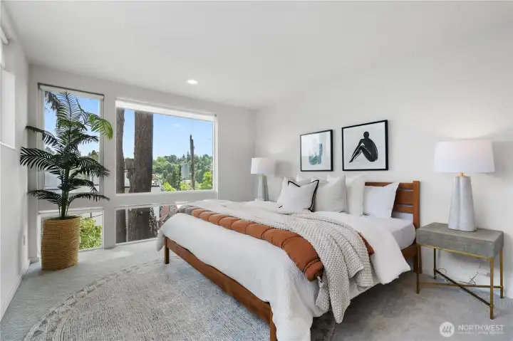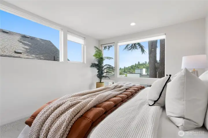 Don't miss this architecturally stunning townhouse just steps away from the Washington Park Arboretum and Madison Valley's celebrated restaurants, cafés and shopping.Flooded with natural light, this recently built 2BR/2BA home offers generous proportions, refined finishes, and an exceptional location.The entry level features a home office with tranquil outlooks, a private guest bedroom, and a beautifully appointed full bath. Upstairs, a chef’s kitchen with Bosch appliances, Bertazzoni gas range, and quartz countertops flows into an open living and dining area with wide-plank hardwoods and oversized windows - perfect for both everyday living and entertaining.The third-floor primary suite offers a spa-inspired ensuite bath and a spacious walk-in closet. A rooftop deck with sweeping views includes gas and water hookups, ideal for entertaining. Assigned parking pad with EV charging. No HOA.