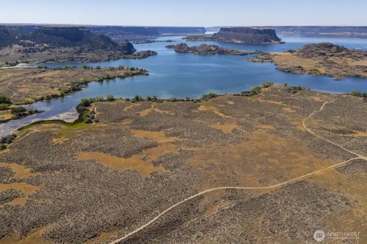 40-acre parcel overlooking Banks Lake with breathtaking views of Steamboat Rock and the Banks Lake recreation area. This unique property was part of a larger tract prior to the construction of Grand Coulee Dam, with Bureau of Reclamation land lying between the parcel and the lake. Accessed by dirt road, the setting is surrounded by plateaus, canyons, and striking basalt and granite rock formations that create a spectacular natural backdrop. Zoning allows for one dwelling; access and permitted uses to be verified. A rare opportunity to own land in a one-of-a-kind recreational landscape!