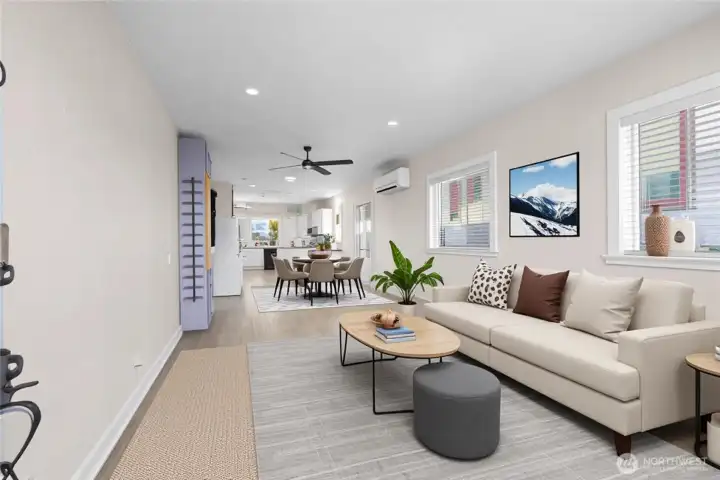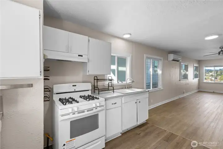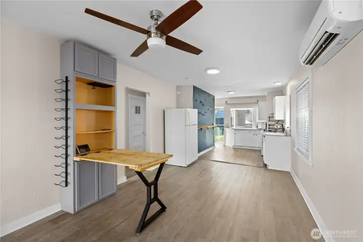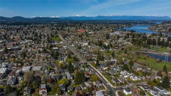 Welcome to this beautifully updated 1905 cottage in the heart of Downtown Bremerton! Perfectly blending historic charm with modern functionality, this 2-bed, 1-bath home features a bright, open-concept living and dining area designed for effortless entertaining. You’ll love the thoughtful, space-saving updates, including a custom fold-down dining table and integrated wine rack. Recent upgrades include fresh interior & exterior paint, a new tankless water heater, and a high-efficiency mini-split. Step outside to a partially fenced backyard with garden space and territorial city views—ideal for summer BBQs. Enjoy the ultimate urban lifestyle with a high walk score: just minutes to the Seattle-Bremerton Ferry, PSNS, Manette, and local dining. Move-in ready and waiting for you!