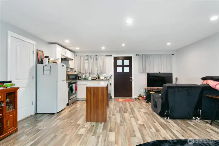 Single Story Mid-Century Modern Home with MultiGen / Duplex Functionality! Live in one side and rent the other, or the door that separates them can allow for more fluid multi generational living options. You will love all the updates making this home turn key!! The front unit features 3 bedrooms + 1 full bathroom. Quality laminate throughout. Fresh paint interior and exterior. Updated appliances! Full kitchen with fridge, microwave stove and plenty of space for cooking and dining. The back studio unit was remodeled in the last 5 years - all new cabinetry, kitchen appliances and separate washer/dryer. Giant level, fully fenced back yard could allow expansion. Adult Family Home maybe? 1 car garage attached to front unit. Newer roof less than 5 years! This home is near it ALL in Federal Way. NO HOA. Unit B Vacant on May 1!