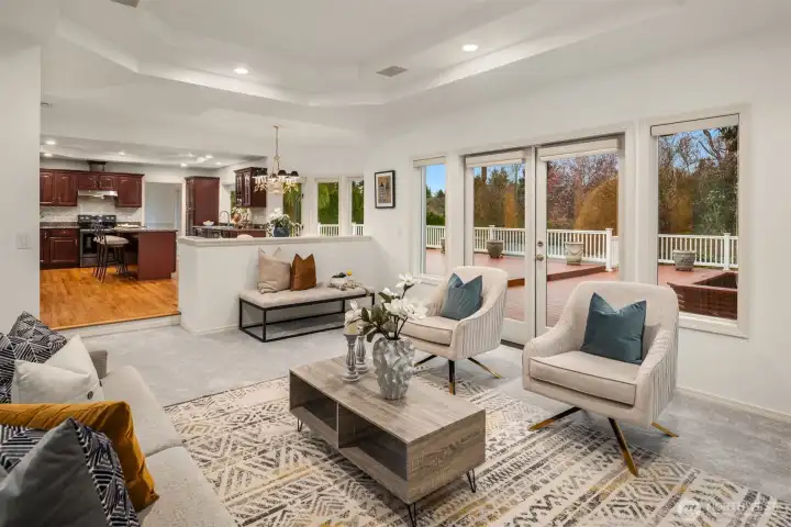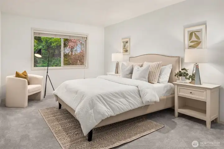 Nestled in the highly sought-after Hunts Point neighborhood, this elegant 4-bedroom, 2.5-bath classic estate rests gracefully on a beautifully landscaped half-acre lot. A grand spiral driveway and mature landscaping create an impressive arrival, while a dramatic two-story foyer with soaring ceilings and a sweeping spiral staircase sets the tone for the home’s refined elegance. Filled with natural light, the residence showcases exceptional architectural details, including stately pillars, intricate millwork, and timeless craftsmanship throughout. The main level offers a sophisticated living room with rich hardwood flooring, a gourmet chef’s kitchen with an expansive island and seating area, and a spacious family room designed for effortless entertaining and everyday comfort. French doors open to an expansive deck overlooking a level, private backyard surrounded by lush landscaping—an ideal setting for gatherings or tranquil outdoor living.Upstairs, four generous bedrooms and two full baths provide comfort and privacy. The serene primary suite serves as a luxurious retreat, featuring a spa-inspired five-piece ensuite bath and generous space. Fresh interior paint and a three-car garage complete the home. Ideally located just minutes from Downtown Bellevue, Old Bellevue, parks, premier shopping and dining, major tech campuses, and top-rated schools in the Bellevue School District.