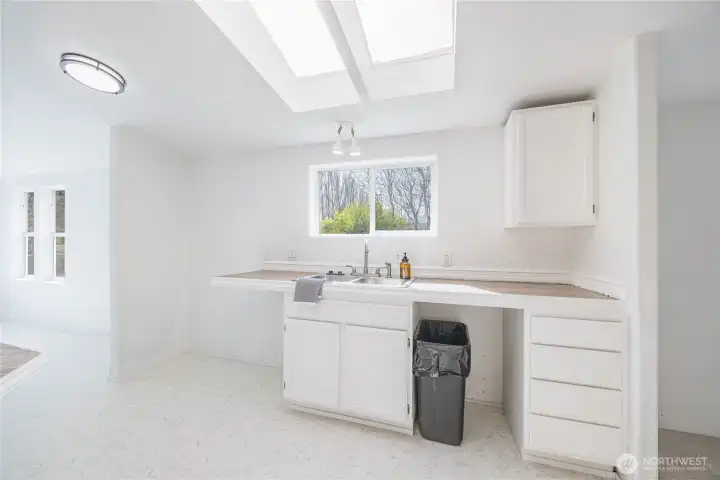Tucked between Sequim and Port Angeles, this inviting property offers the perfect blend of country privacy and close-to-town convenience. Set on just over an acre of lightly wooded land, the home is surrounded by evergreens for seclusion while the cleared area around the house allows abundant natural light to pour through the many windows and skylights.Inside, the home feels warm and bright with a free-standing wood stove, vaulted ceilings, and an easy, comfortable layout. The kitchen and living spaces flow naturally, and the home includes 3 bedrooms and 2 full baths, ideal for anyone seeking a peaceful house with room to spread out. A spacious laundry/back room provides excellent flexibility for pantry storage or a mudroom.Outdoors, the acreage is well-suited for a small hobby farm with multiple outbuildings and a charming cabin that can serve as a studio, guest space, or workshop. Whether you're searching for homes with privacy, room for animals, or simply a quiet retreat near town, this is a rare opportunity in the Port Angeles real estate market.