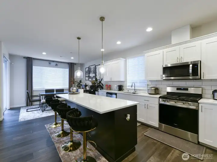 Welcome to Nisqually Place! This beautifully maintained home built in 2024, offers a modern layout designed for today’s lifestyle. The open-concept main floor features a den, stunning kitchen, dining area, and Great Room with fireplace, all flowing to a beautifully designed back patio—perfect for entertaining. Upstairs offers 4 spacious bedrooms, including a primary suite with spa-like 5-piece bath and walk-in closet. The third-floor bonus room with 3/4 bath provides flexible space for guests, office, or media. Full fencing, front and back landscaping, and heat pump with A/C included for year-round comfort. Dont miss this opportunity.