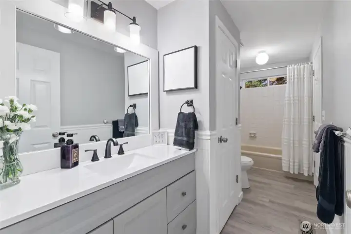 Set on a shy acre of beautifully landscaped grounds, this private Bothell retreat offers the space, comfort, and lifestyle you’ve been waiting for. Surrounded by mature, park-like landscaping, the property creates a rare sense of seclusion while still keeping you close to everything. Step inside to a light-filled great room with soaring vaulted ceilings that instantly elevates the space. The open island kitchen flows effortlessly into the main living area and formal dining room, ideal for everyday living and hosting alike. The expansive primary suite is your personal escape, featuring a large walk-in closet & a well-appointed ensuite with large tiled step in shower. Two additional well-sized bedrooms and a full bath provide flexibility for guests, work-from-home setups, or growing households. Downstairs, a spacious utility room with added half bath enhances everyday convenience, while the oversized two-car garage offers ample storage and workspace. Outside, the lifestyle continues. Enjoy your own sport court—perfect for basketball or pickleball—plus expansive outdoor areas ideal for entertaining, play, or simply relaxing in your private setting. Located within the highly regarded Northshore School District and offering easy access to major commute routes, this home delivers the perfect balance of privacy, space, and convenience. Opportunities like this—nearly an acre, usable outdoor space, and a home designed for both comfort and connection—are rare.