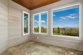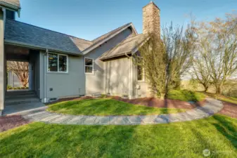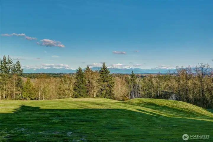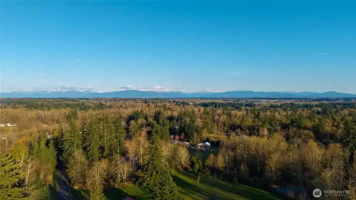 Set on 2 private acres with stunning views of the North Cascades and Mt. Baker, this custom-built one-story home offers comfort, beauty, and privacy in a truly special setting. Vaulted ceilings and a gas fireplace anchor the living room, while the sunroom off the kitchen provides a bright, inviting space to relax and enjoy the changing light. The privately situated primary suite features a full ensuite bath and walk-in closet. A wraparound patio spans the back of the home, creating a perfect place to unwind and take in the view. Radiant floor heating adds year-round comfort, and nearly 400 square feet of bonus space above the detached two-car garage offers flexibility for a studio, office, guest space, or storage. Served by a state-of-the-art well, this rare property combines custom single-level living with an exceptional setting off Stein Hill Lane.