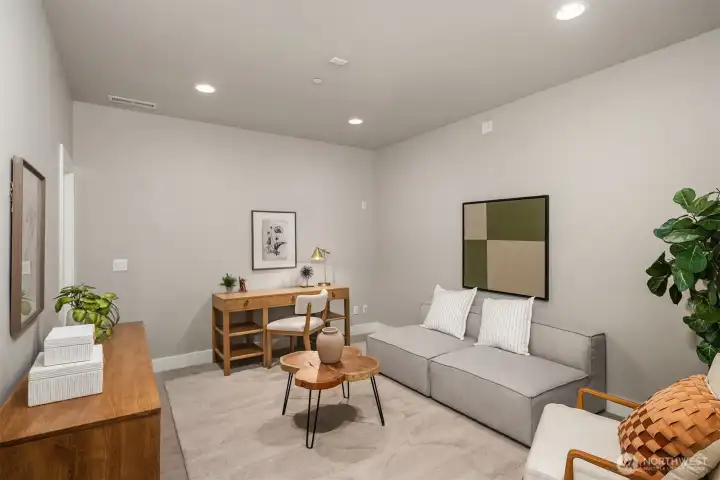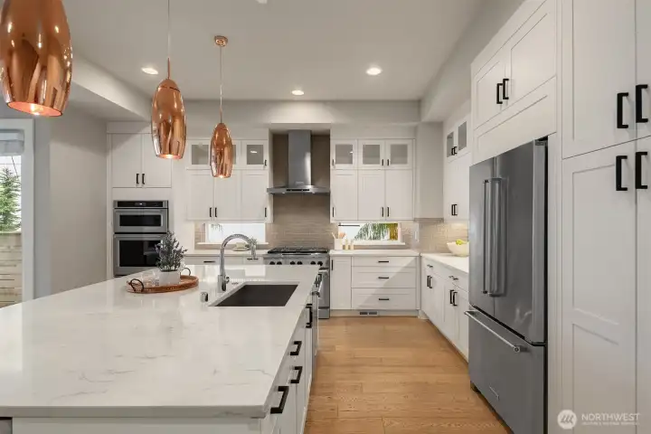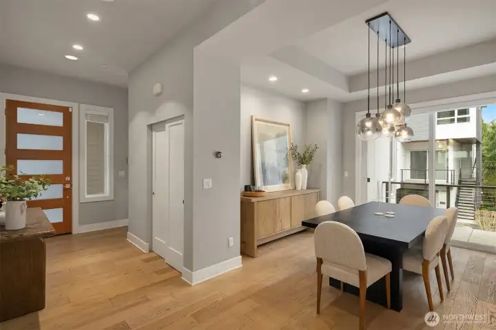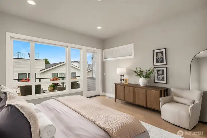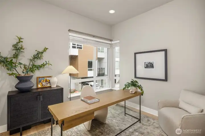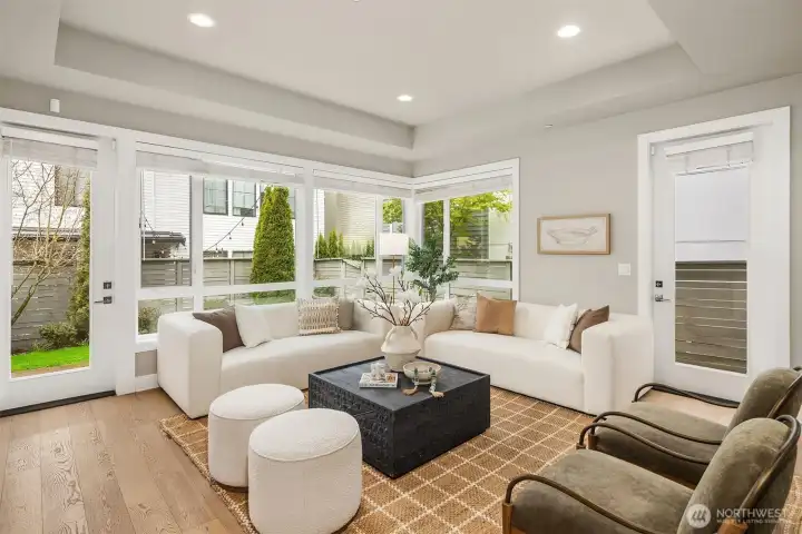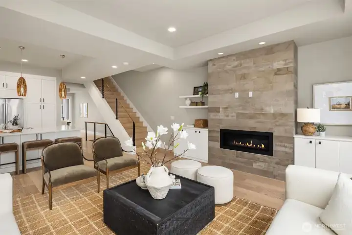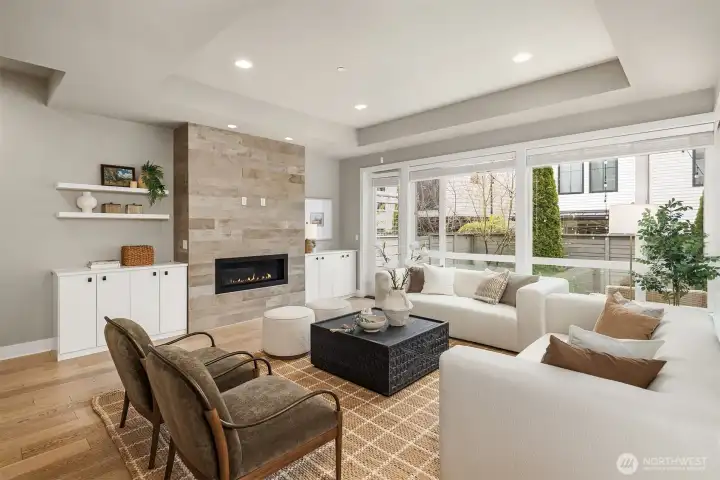 Heart of downtown Kirkland living at its best. Just a short stroll from the lake and two blocks from shops, cafes, and restaurants, this designer luxury townhome offers a rare blend of style, convenience, and walkability. Soaring 10-foot ceilings, walls of windows, and light interior finishes create a bright, sophisticated feel throughout. The open kitchen flows seamlessly into the living room and out to a patio with yard space, ideal for entertaining or quiet everyday living. A main-floor office with an adjacent 3/4 bath adds flexibility for work or guests. The spacious primary suite features his-and-her closets, the second bedroom upstairs is expansive and easily serves as a second primary suite with spa bathroom with beautiful soaking tub. Lower level offers bonus bedroom, media or exercise space. Thoughtful upgrades include hardwood floors throughout, designer lighting, rec room sound wiring, closet organizers, whole-house water filtration, air conditioning, and a large private 2 car garage. A wonderful patio is ideal for summer and outdoor grilling. For buyers seeking a polished, low-maintenance lifestyle in one of Kirkland’s most desirable neighborhoods, this boutique home community stands out. All the benefits of home ownership with the lock and go lifestyle you love.