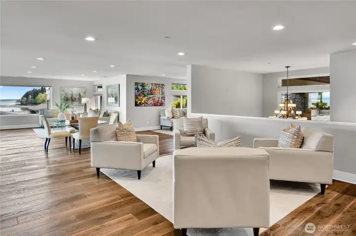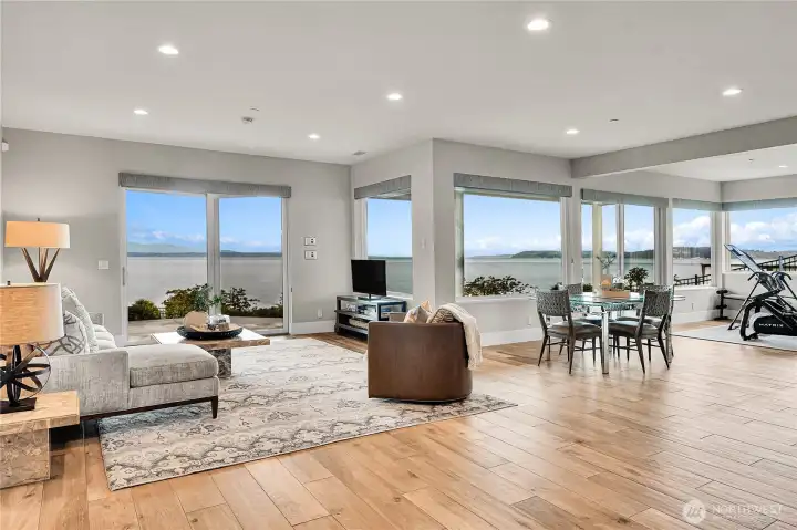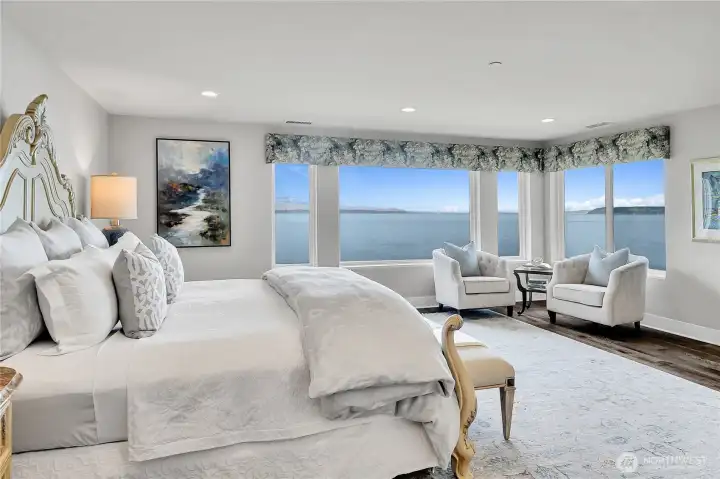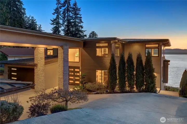 Set behind gates along the shores of Puget Sound, this architecturally refined waterfront estate delivers a front row seat to one of the Pacific Northwest’s most captivating panoramas—Olympic Mountain sunsets, island silhouettes, passing vessels, and the rhythmic presence of marine life below. Custom built in 2018, the 8,100+ sq ft residence is a study in precision and restraint, where curated materials, bespoke millwork, and designer lighting create a timeless yet contemporary aesthetic. Expansive walls of glass dissolve the boundary between indoors and out, framing the scenery as living art. The home balances grand scale with refined livability, every space is designed to impress—yet feels effortlessly inviting. Five sumptuous bedrooms, (primary on each floor) 4.5 spa inspired baths, epicurean kitchen, an entertainers dream of grand scale spaces flooded with Western light, media room, flex space for music/game/Zoom, wine cellar, workout space, personal sauna, two laundry rooms, a gated motor court, and four car garage complete this rare offering—an exceptional expression of luxury waterfront living in one of Edmonds’ most coveted enclaves known as Meadowdale Beach.