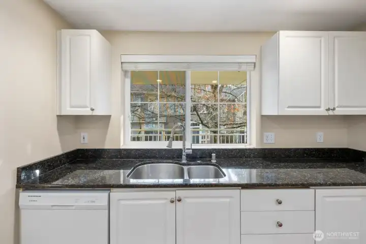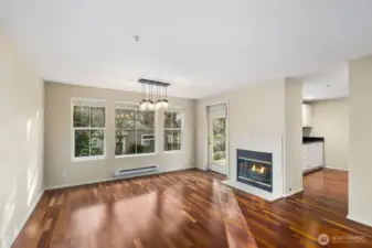 Welcome to Klahanie, a vibrant community offering parks, heated pools, tennis and sport courts, and scenic walking trails in a safe and welcoming setting, just moments from shopping, dining, and easy access to I-90. This 2-bedroom condo features an open-concept layout with new paint, and flooring throughout the living and dining areas, plus a cozy gas fireplace and access to a covered balcony—perfect for year-round relaxing or entertaining. The kitchen offers granite countertops, white cabinetry, and ample storage. The spacious primary bedroom includes a walk-in closet, and the versatile second bedroom is ideal for guests or a home office. Dedicated parking spot. Located within the highly rated Issaquah School District. Comfort, convenience, and community all in one.
