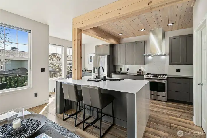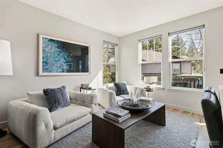 Impeccable style abounds in this beautifully updated 3 bedroom, 2.5 bath home in Snoqualmie Ridge, offering sweeping mountain views and a thoughtfully designed open floor plan. Enjoy brand-new flooring throughout, a custom fireplace with sleek modern lighting, and fresh custom paint that enhances every space. The newly remodeled kitchen shines with contemporary finishes, perfect for both everyday living and entertaining. A modern updated powder bath adds to the home's elevated design and functionality. The light-filled great room creates an inviting atmosphere, seamlessly flowing into a dreamy sunporch —an ideal retreat for morning coffee or relaxing evenings year-round. Every detail has been carefully curated to blend comfort, elegance, and style. Located in one of Snoqualmie's most desirable communities, this home offers the perfect balance of scenic beauty and modern living, making it a true standout opportunity you won't want to miss.