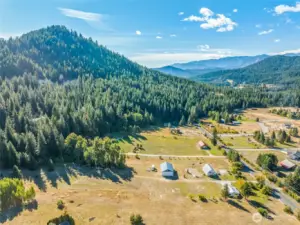 Incredible 5.15 acre property with panoramic mountain views & wealth of potential! A charming rustic barn, complete with cozy apartment & historic hayloft, adds unique character. The hayloft, once a popular spot for local square dancing, is perfect for converting into a wedding venue or creative studio. Massive 2,460 Sq. Ft shop, featuring drive-through RV doors, provides ample space for vehicles & storage or the perfect setup for a personal mechanic's shop. Authentic cinder block home offers a comfortable living option while you build your dream home, or serve as a rental income opportunity. The true value of this property lies in its expansive land & limitless possibilities for future development, making it a rare & exciting opportunity.